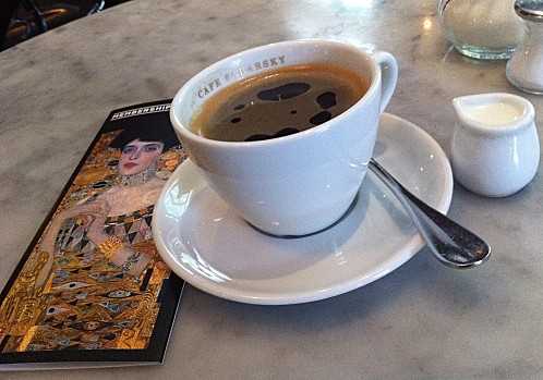 Après la visite de cette magnifique galerie d’art de New York, après avoir été émerveillé par les oeuvres de Gustav Klimt, vous méritez bien un bon café à la crème accompagné d’un gâteau au chocolat !